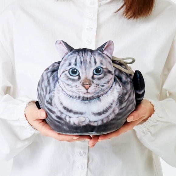 ▼這是一個貓咪造型的可愛束口袋,不管正面還是背面,看起來都非常可愛,也很逼真。胖嘟嘟的貓咪,簡直能夠融化人心。這個包包的設計非常巧妙,一拉就能收緊袋口。拿著它出門,就像隨身帶著一隻貓咪一樣啊。