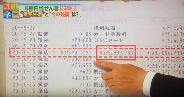 ▼唱田士始矢決定賭一把,便把手上的錢去買了totoBIG樂透,結果真的中了一等獎!瞬間,他戶頭就匯入了獎金6億日幣(約台幣1.7億元),一夜變成富豪!