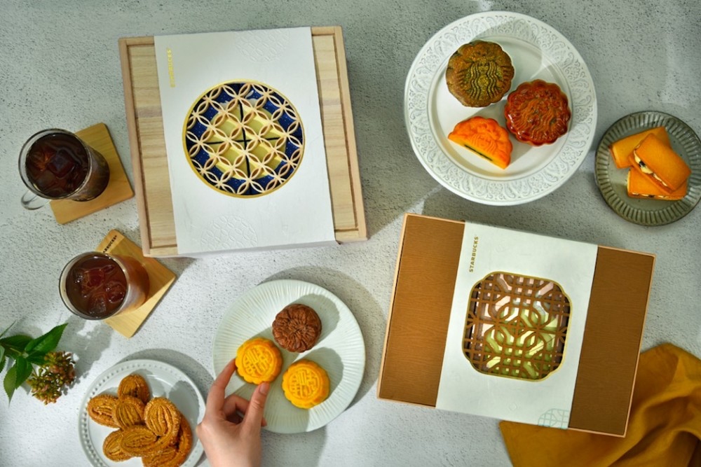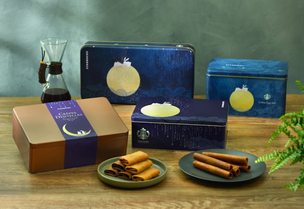 ▼禮盒部分,星巴克也推出限定「月光寶盒」,結合中西方特色,裡面有義式松露牛肝菌內餡的「起司松露奶皇月餅」,還有以台灣烏龍磨製的「烏龍奶皇月餅」。甜點的蛋卷禮盒也很受歡迎哦~