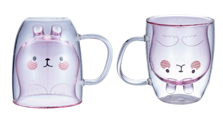 ▼本次的大獎應該就是這款「粉兔把手雙層玻璃杯」了!杯子內部就是可愛的粉色月兔,倒入牛奶時,就會變成小白兔啦~