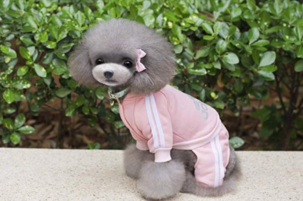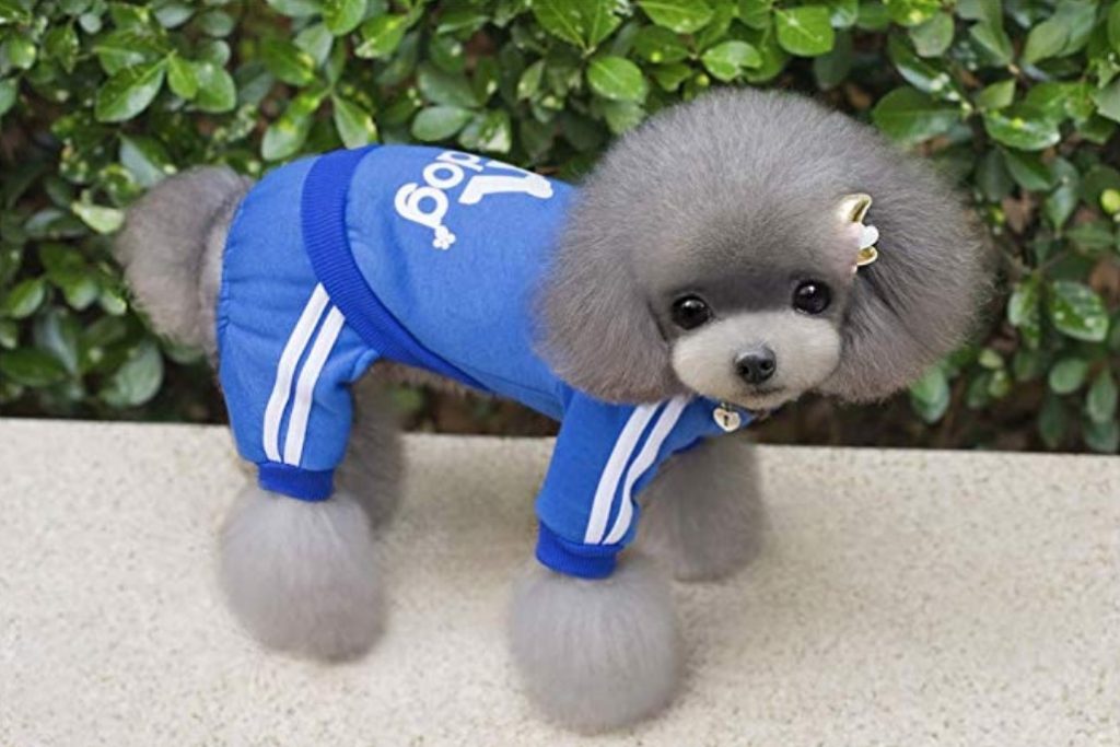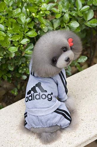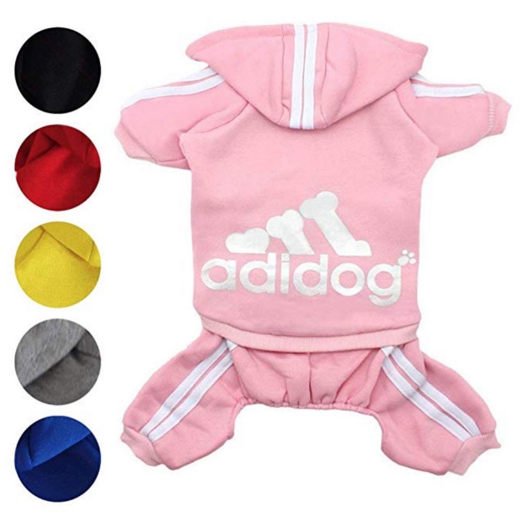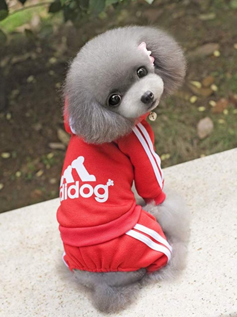 ▼Amazon的店家參考了愛迪達的服飾,推出了名為「愛迪狗」(Adidog)的連帽穿搭,狗狗馬上化身時尚代表。