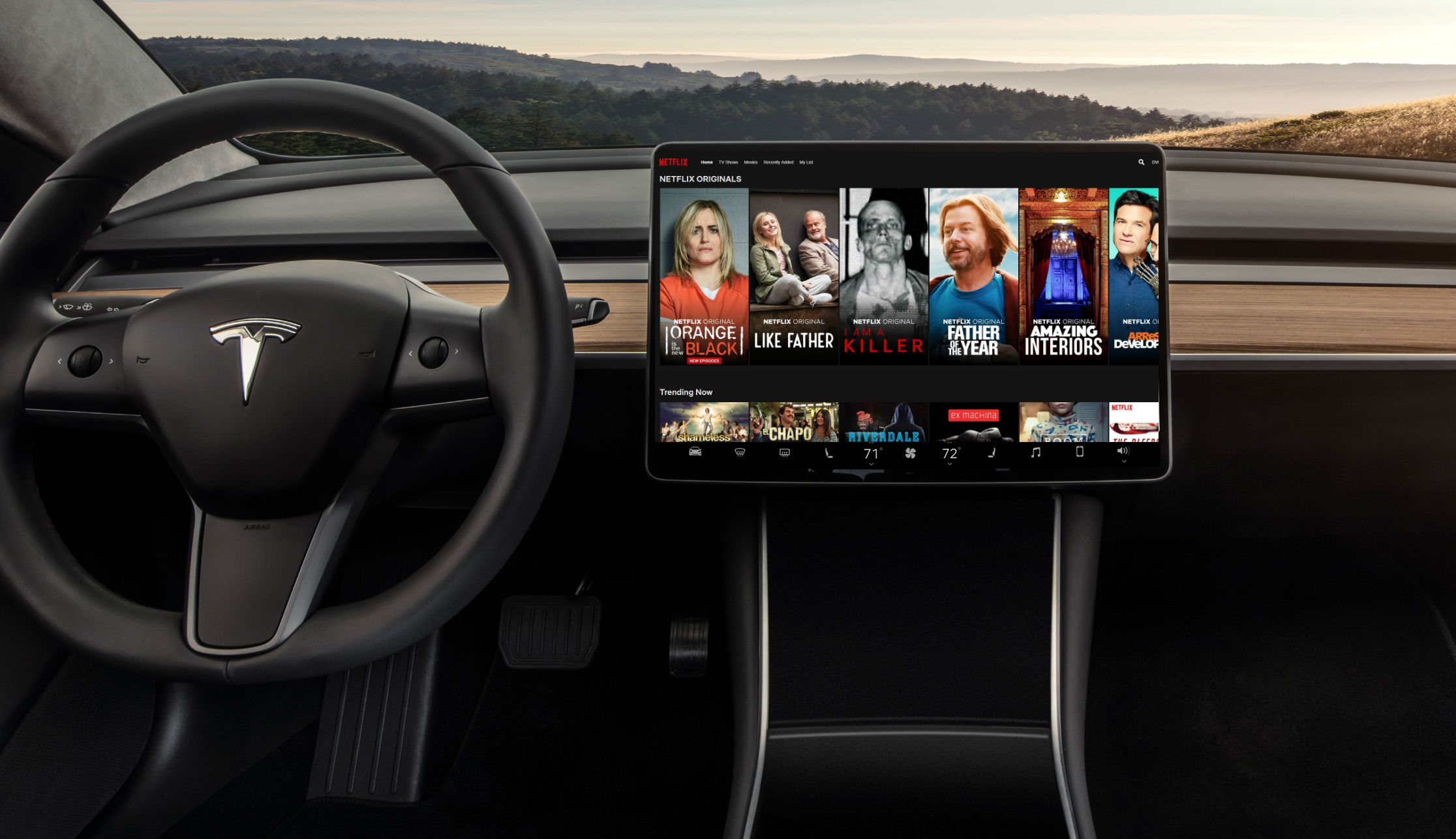 Ability to stream YouTube & Netflix when car is stopped coming to your Tesla soon! Has an amazingly immersive, cinematic feel due to the comfy seats & surround sound audio.