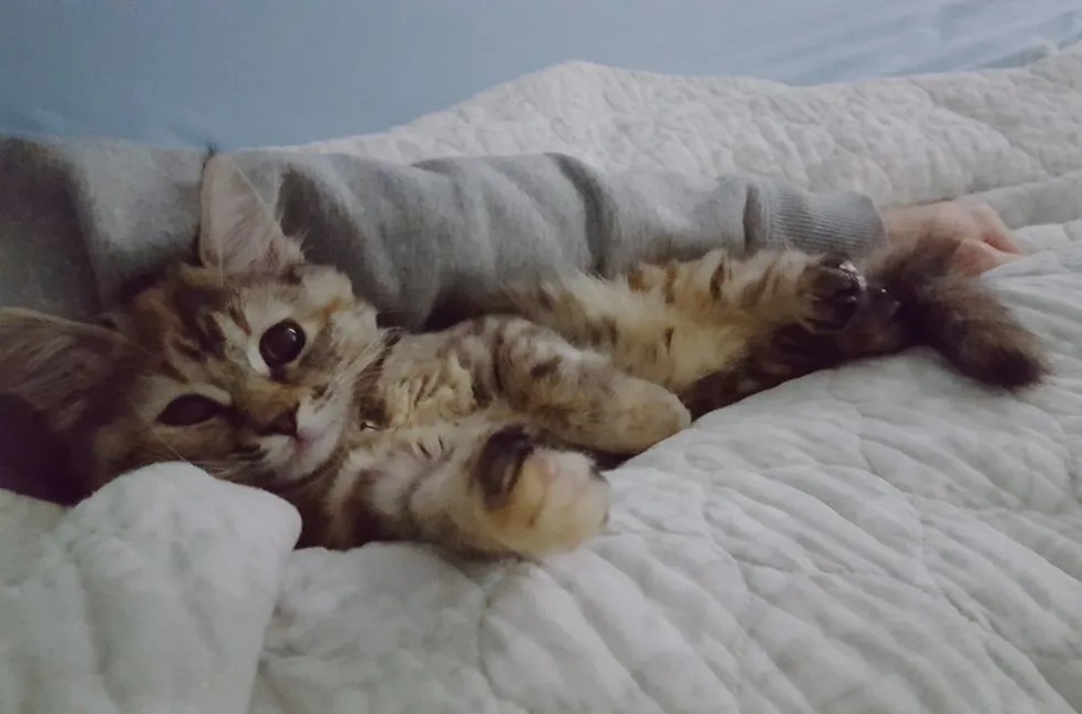 奶喵被領養「一定要感謝主人」 每天聽鬧鐘「自動上床抱抱」:你再睡一下嘛!
