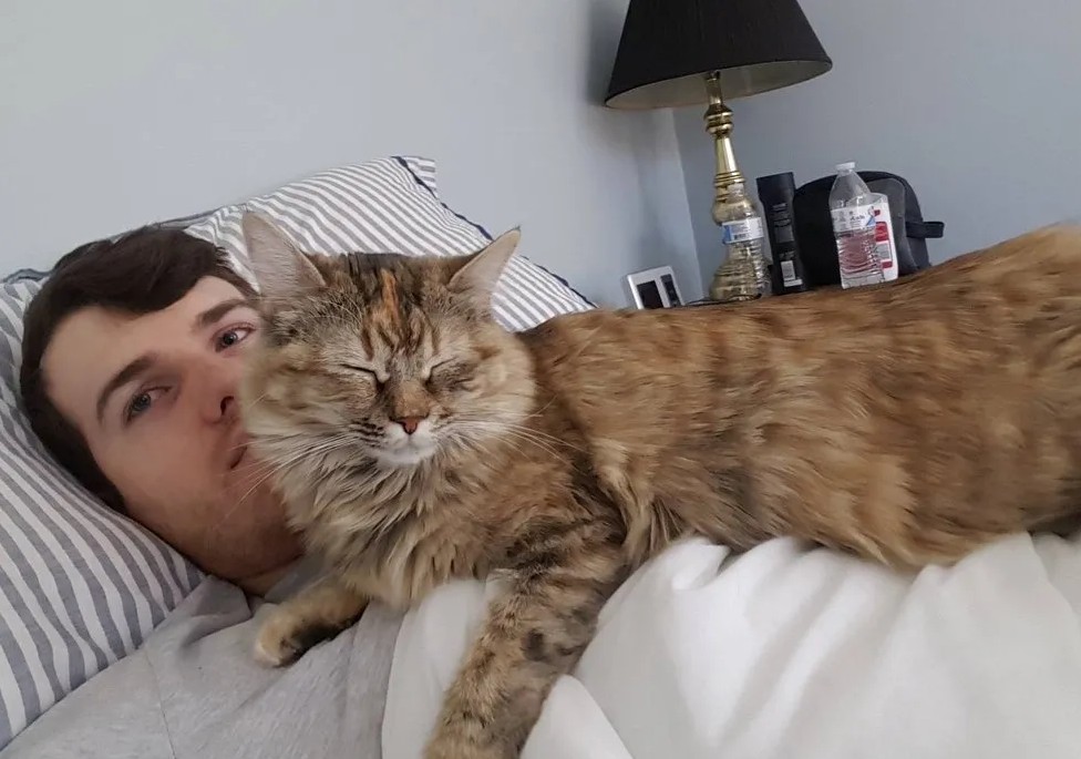 ▼「每當牠聽到鬧鈴聲時,牠就會跳到我的懷中躺著,如果我繼續躺著不動,牠甚至可以在我胸前多睡一、兩個小時。」