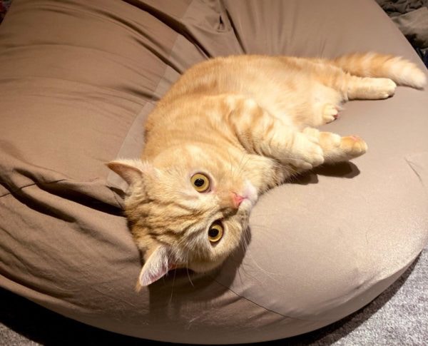 ▼1年前,推住將這隻臭臉橘貓從寵物店帶回家。那時候貓咪看起來超兇,總是皺著眉頭,好像對什麼都看不順眼。