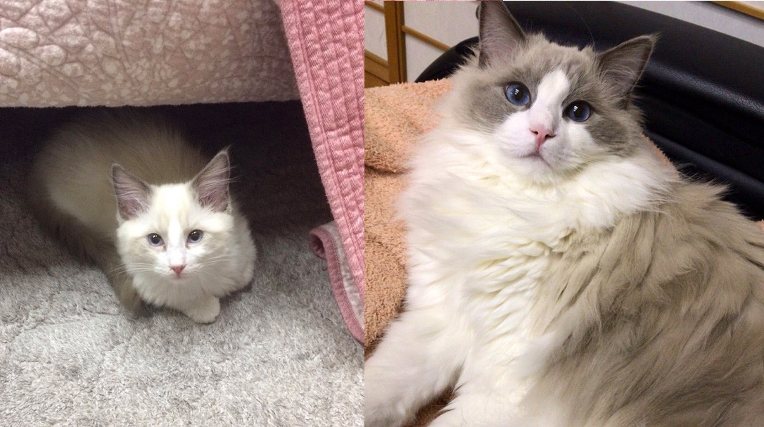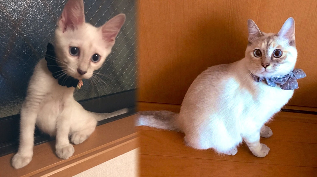 愛され続けると女性の顔も変わるっていうのがトレンドになってるけど一年間愛され続けた猫さんの変化も見て。(1.2枚目1年前ペットショップ)(2.3枚目現在) pic.twitter.com/DfmLo4VMuV