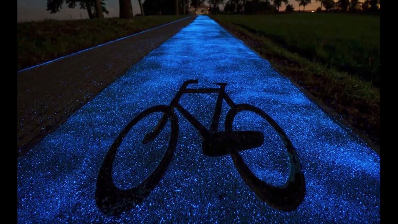 ▼原來這條自行車道是由波蘭的 TPA 公司所研發的,他們在路面塗上一種特別的合成材料,讓它在白天能夠吸收太陽所釋放的能量,當太陽下山之後,還可以繼續發光長達10小時!