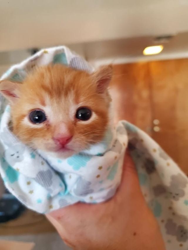 2019年08月01日後院傳出貓咪叫聲,打開門一看竟然是一隻小貓咪!房子主人在後院發現這隻小浪喵後,馬上就把牠帶進房子裡取暖,還幫忙小浪喵尋找媽媽,只是小浪喵等了一夜都沒有看到媽媽出現。無奈之下,房子主人只好請救援志工來帶牠去可以獲得妥善照顧的收容所。