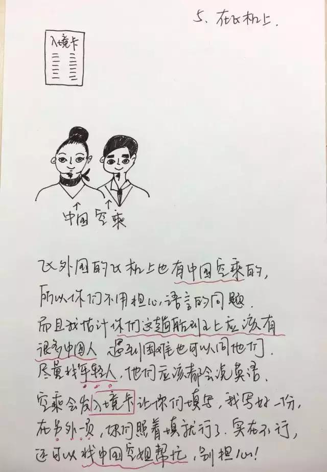 2019年08月04日對從未出過國、又不懂英文的人來說,出國是一件很麻煩的事,出入境就是個大問題。不久前,大陸一對年近60歲的父母決定赴美探望剛剛生下孩子的女兒,但他們不知道該怎麼做。貼心的女兒為他們手繪了超詳細的指示,其中還有貼心的注意事項和叮嚀,讓人覺得超暖心。