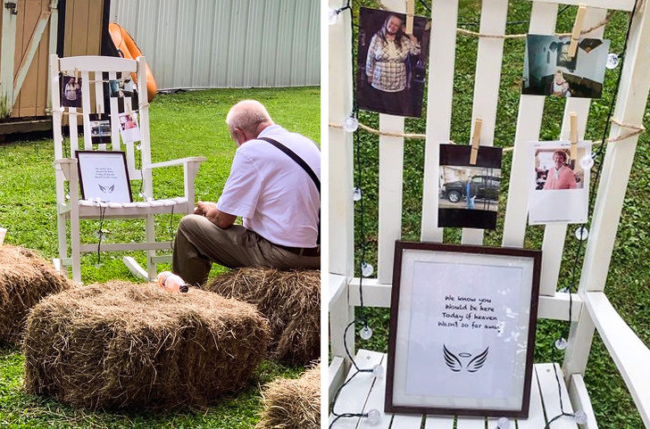 ▼「我的婚宴上,爺爺坐在奶奶的照片前用餐。」