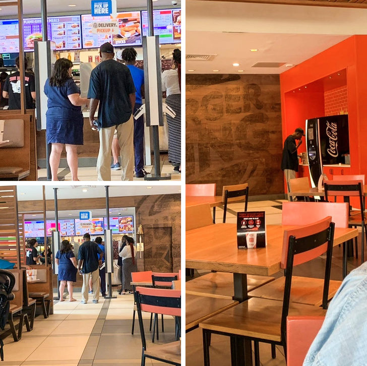 ▼這位女士看到街友在櫃檯跟店員要食物,就幫他買了一份餐點。