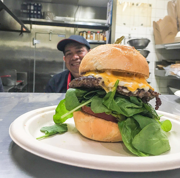 ▼「廚房經理做了一個漢堡,他覺得很自豪,讓我幫忙拍照。」