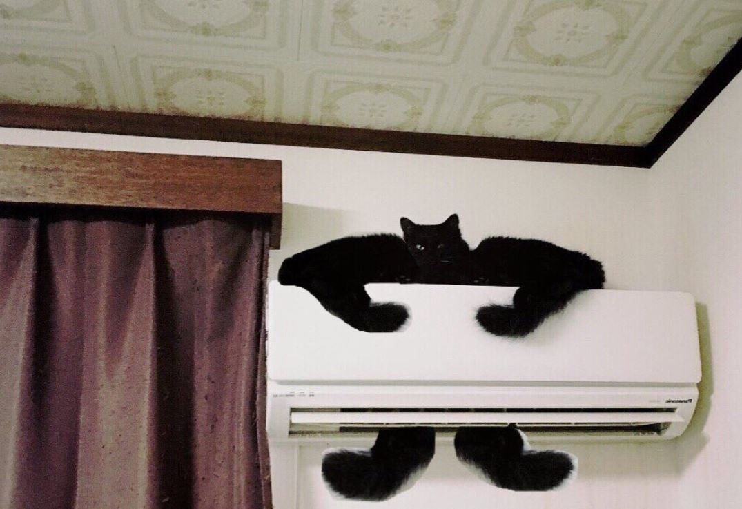 肩幅の広い筋肉ムキムキ猫が、エアコンの中から登場。と言われたらそうとしか見えなくなった pic.twitter.com/cSGy7Wie5A