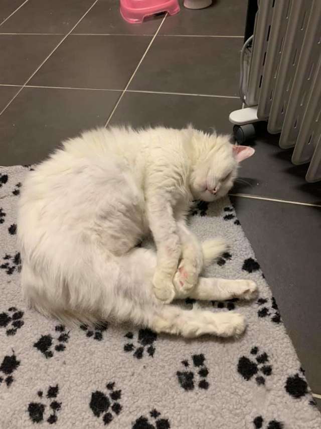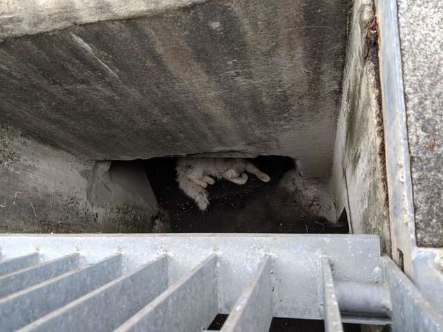 ▼2個月後,有人發現了Snowball。牠在距離Ryoko家不到一公里的地方,躲在髒亂的下水道裡。Snowball瘦到皮包骨,Ryoko連忙帶牠去治療,獸醫看到牠後直搖頭,甚至不敢保證牠能活下來。