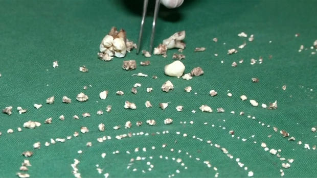 ▼醫生驚訝表示,這526顆牙齒都長得非常「完整」,它們的大小從0.1毫米到15毫米都有。但即使是最小的牙齒,也具備了牙冠、牙根和琺瑯質,可明確知道這是一個牙齒。