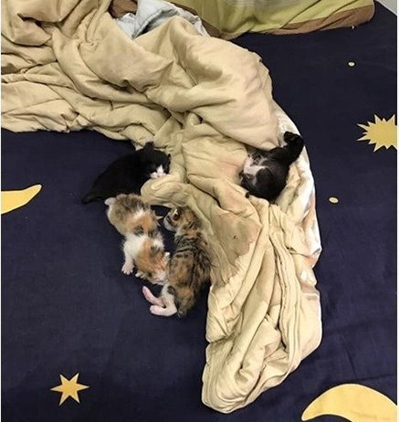 流浪貓生小貓並不奇怪,不過會如此放心將小貓帶進人類家裡「定居」的貓咪卻不多,因為通常小貓身上沾了人類的氣味,很容易會造成貓媽媽警戒,會主動帶著小孩來到原po床上,看來這隻貓媽媽真的非常信任原po呢!