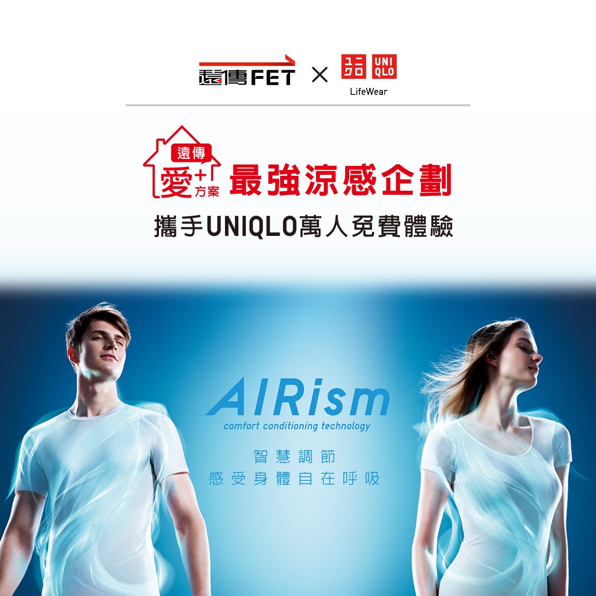 2019年08月05日炎炎夏日,流汗造成的衣服粘膩感總是讓你感到不舒服嗎?今年服裝品牌UNIQLO和遠傳電信聯手帶給消費者全新感受,在酷暑之際推出了全新的涼感企劃,凡在8月申辦遠傳「愛+」方案,就能獲得UNIQLO熱銷AIRism輕盈涼感衣,讓民眾能在大熱天清涼一夏!