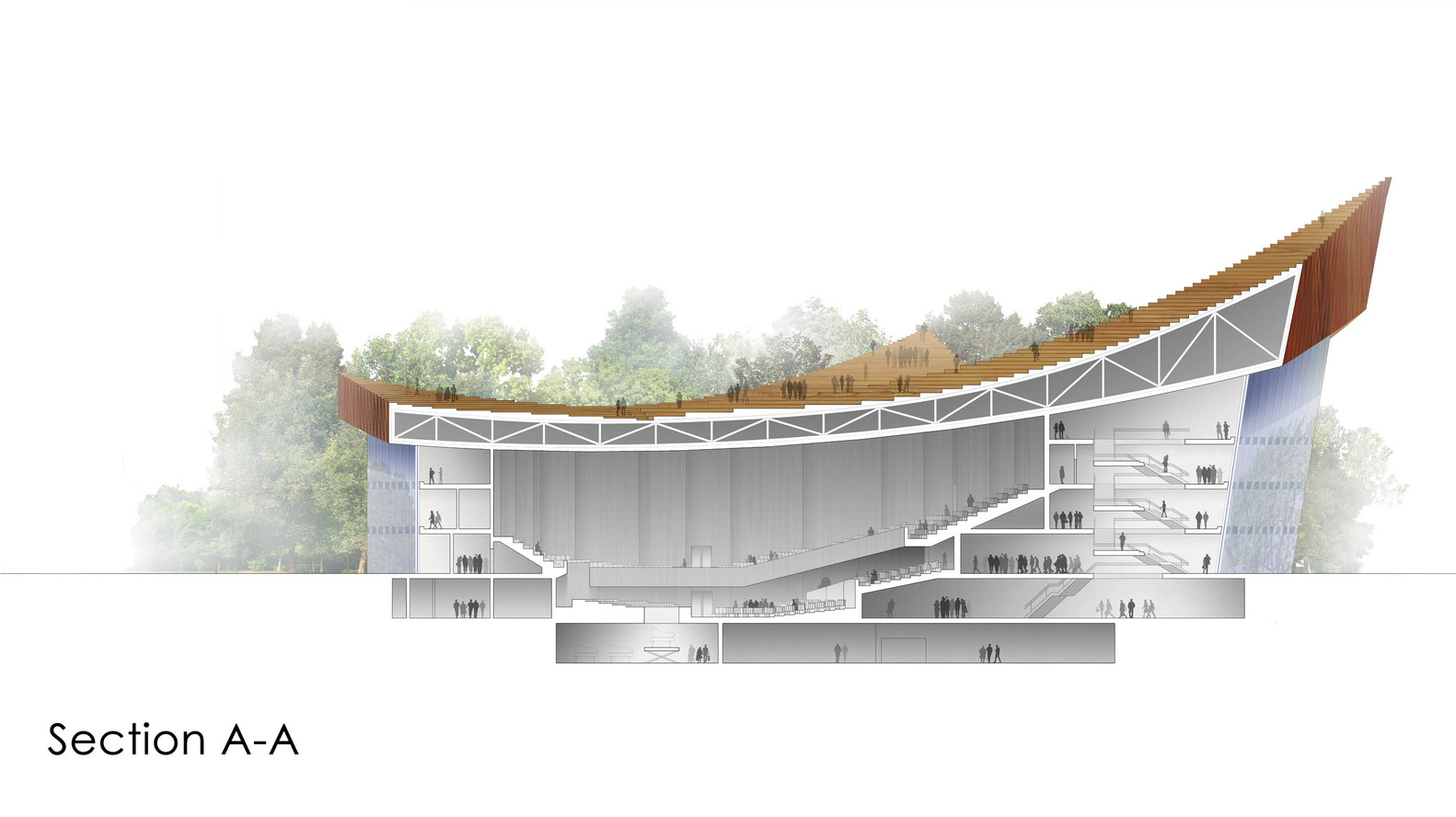 這座音樂廳非常時尚,也很實用。如果它變為現實,一定超受歡迎,周圍的居民應該也很喜歡到這座音樂廳的屋頂上玩吧~