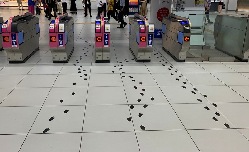 ▼會發出皮卡丘叫聲的驗票口只有三台,地上也貼心地畫上皮卡丘的足跡,讓想朝聖的人不要走錯。