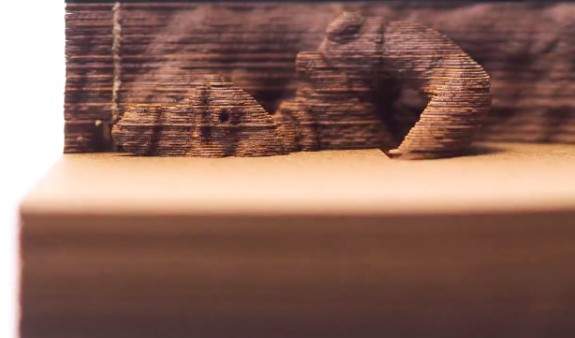 ▼「合掌土偶」由145張便條紙堆疊起來,隨著一張張的使用後,便條本會漸漸成形,待全部使用完畢後,藏在最下面的土偶就會「出土」了!