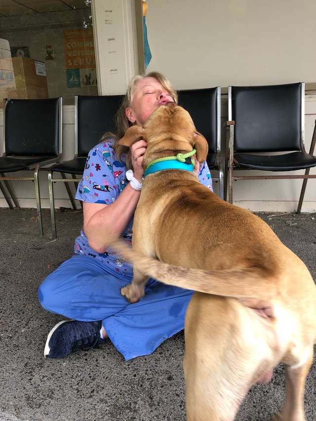▼Pesci的身體沒有大問題,只需要補充水分就好了。牠很喜歡和人玩,還會主動求抱抱,求摸摸。提起牠的經歷,工作人員非常心疼:「牠被栓在那麼偏遠的地方,還遠離公路,就是為了不讓人們輕易找到牠。」