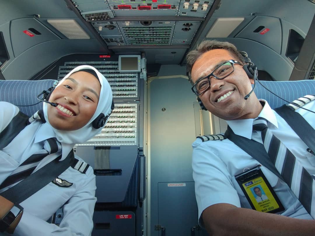 ▼Safia表示爸爸高中畢業後就加入馬航當學員,然後眨眼就過了40年的時間。當她們從飛行學院畢業,加入亞航當上機師後,Safia的爸爸毅然決然地辭職,跳槽到亞航跟女兒共事!