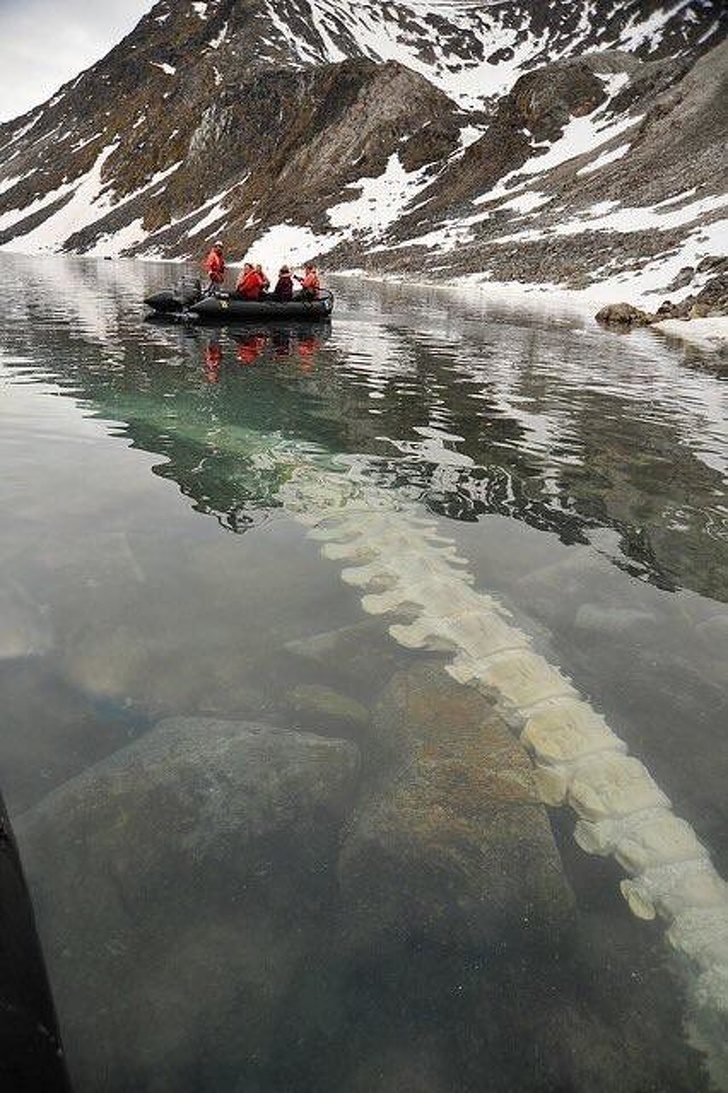 ▼3. 挪威湖水下出現鯨魚鰭椎骨,當場目睹的人馬上就拍下難得的畫面。