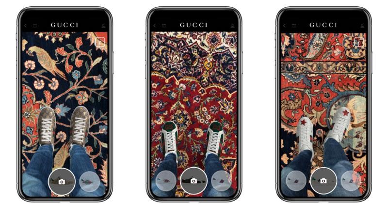 ▼在這款 Gucci 推出的虛擬試穿 App 當中,利用 AR 擴增實境技術,讓使用者可以使用虛擬試穿功能,看到各種不同款式的 Ace 球鞋穿在自己腳上的模樣!這個 App 除了令潛在消費者更加容易衝動消費之外,也讓人感受到了品牌的用心!