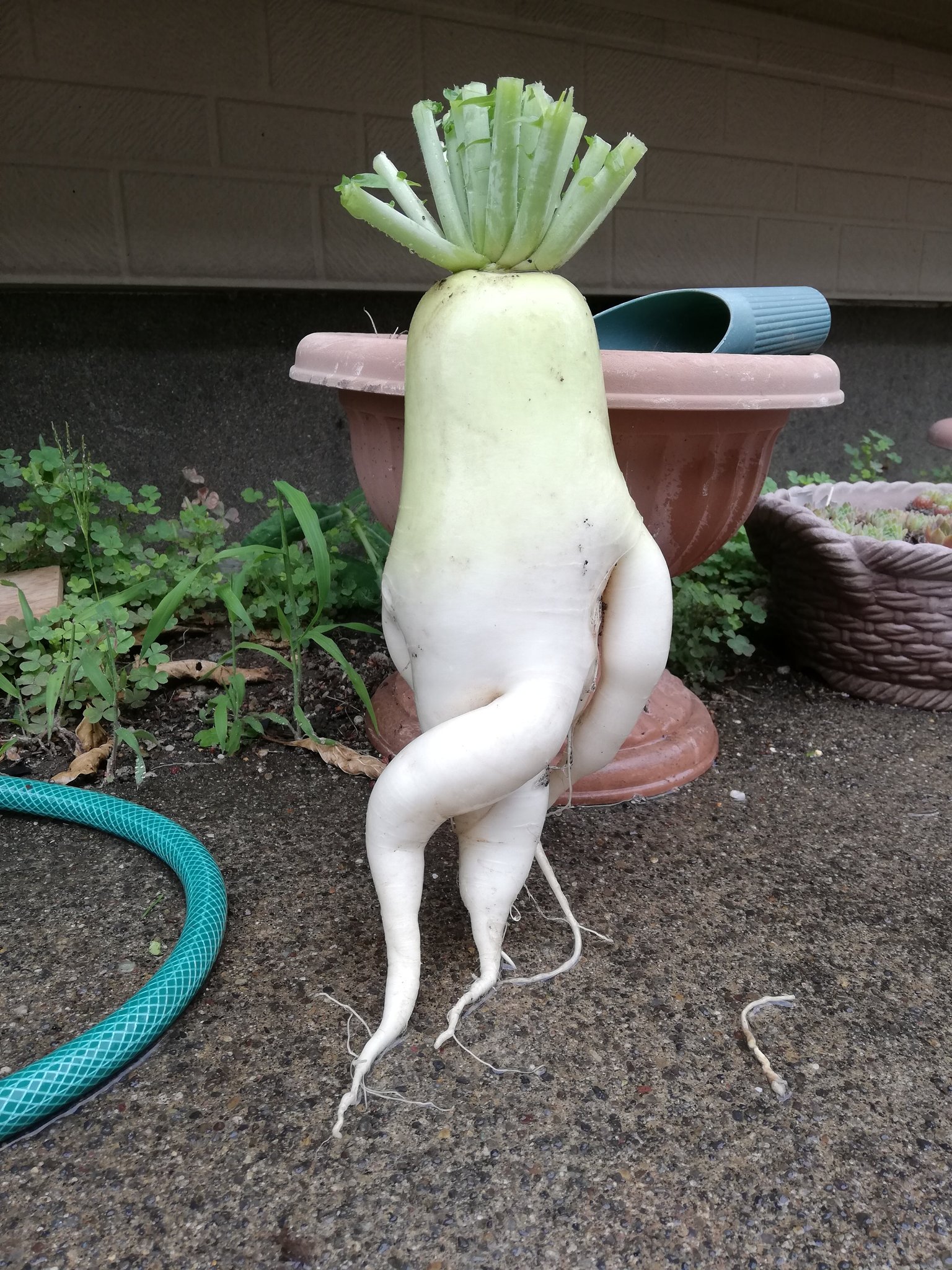 大変ナイスな大根を抜きました。無息子はマンドラゴラだと大騒ぎ。 pic.twitter.com/qhbqi0YpJZ