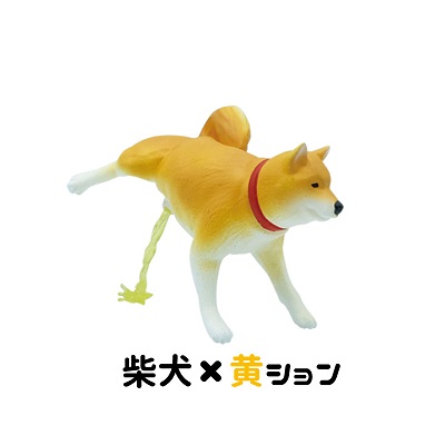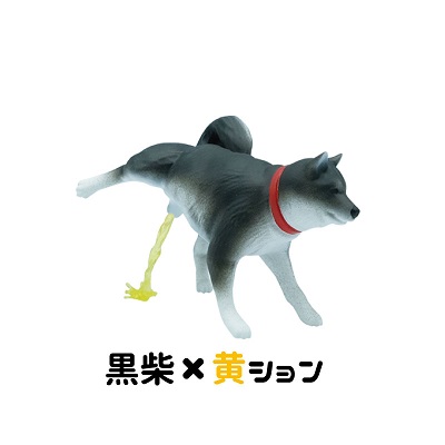 ▼扭蛋共分為6款,分別是黃色柴犬、黑柴犬和跟柴犬相差無幾的秋田犬。尿尿顏色分為黃色和藍色,硬要說的話其實相差不大,大概扭到哪款都不會失望吧…(一般正常狗狗尿尿是藍色的話可以要立刻就醫喔!)