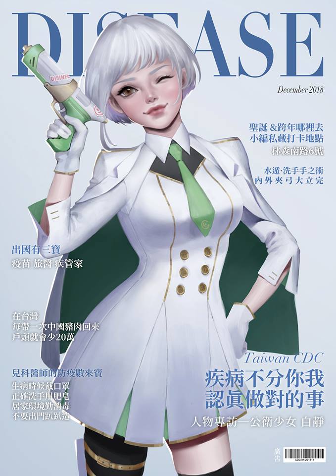 ▼原來他們從2018年11月開始,推出了將各種狀況「擬人化」的作品,不僅有人性別、身高、體重、星座、個性、喜好等設定,還做成了雜誌封面專訪人物的模樣,就連文字也會搭配時事或者當時最紅的話題!像以下這位就是虛擬的公衛少女:「白靜」了!