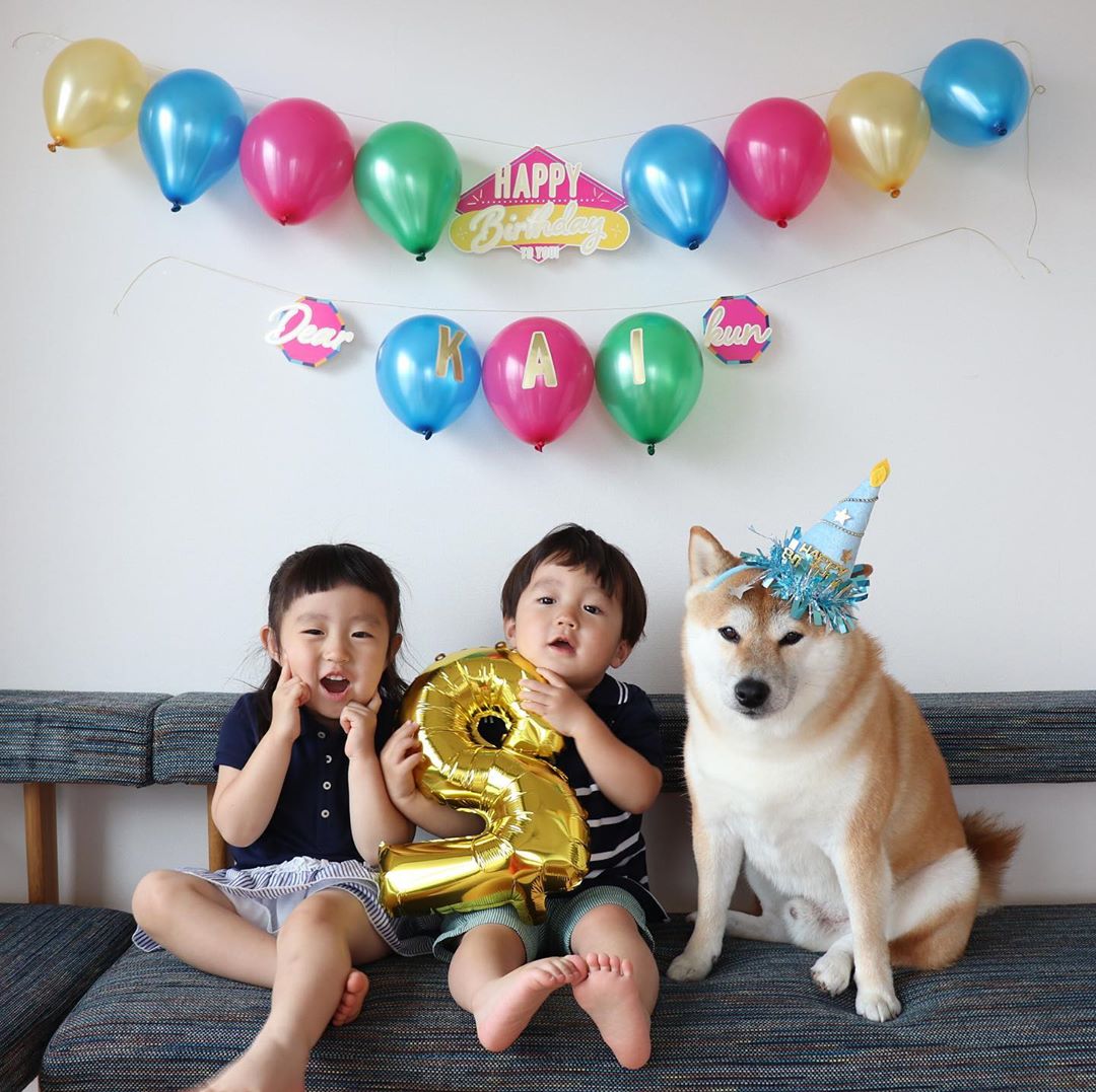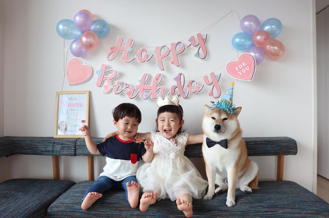 ▼銀次郎不僅僅是寵物,還是家人。每到特別的日子,牠都會跟弟弟妹妹一起慶祝。媽媽會給他們3個好好打扮,拍主題合照。