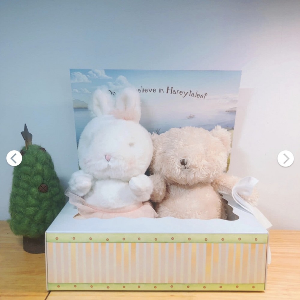 ▼買「Bunnies By The Bay」的玩具,都會附帶專屬的紙袋、紙盒,平時將小玩偶放在裡面,當成它們的家。