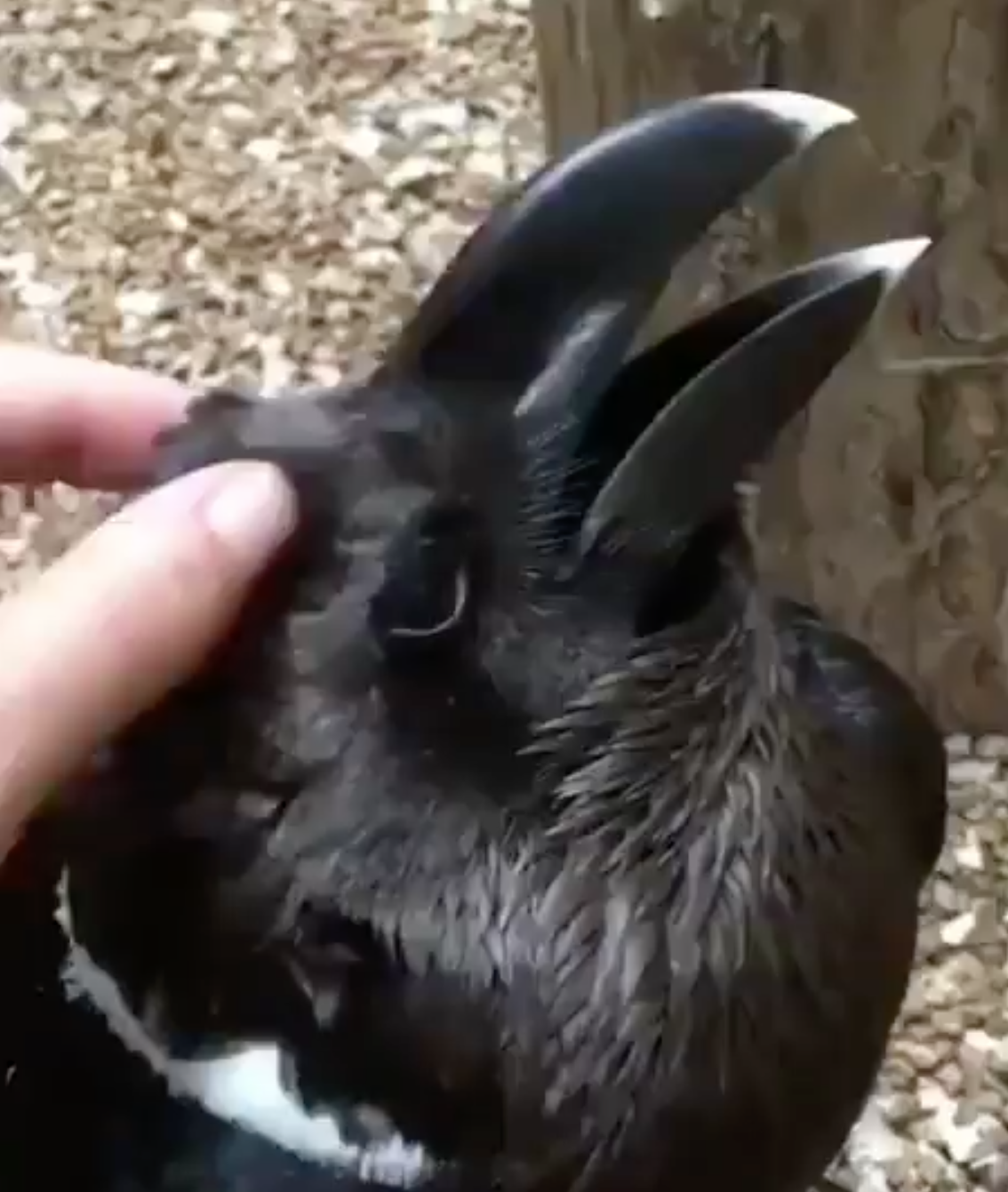 ▼推特網友Dan Quintana上傳影片後寫道「兔子喜歡被撫摸著鼻子」。