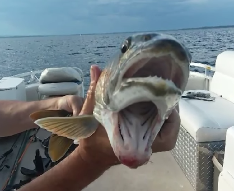 外國女子釣到長相罕見的「雙口魚」 網驚:都市傳說生物