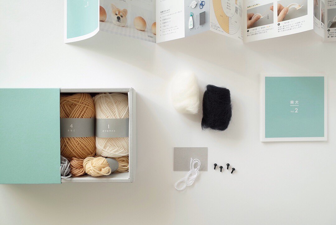 ▼開啟盒子一看,裡面有著各種柴犬身上不同顏色的毛線、用來當做眼睛的釦子,還有非常詳細的說明書。