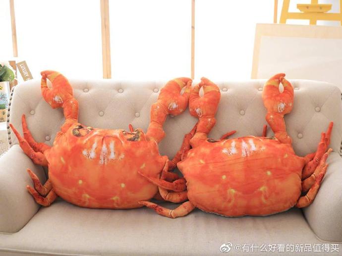 ▼這款螃蟹抱枕非常逼真,蟹殼有光澤,就連蟹腳都栩栩如生,還有強壯有力的蟹螯,真的很怕被夾到呢。