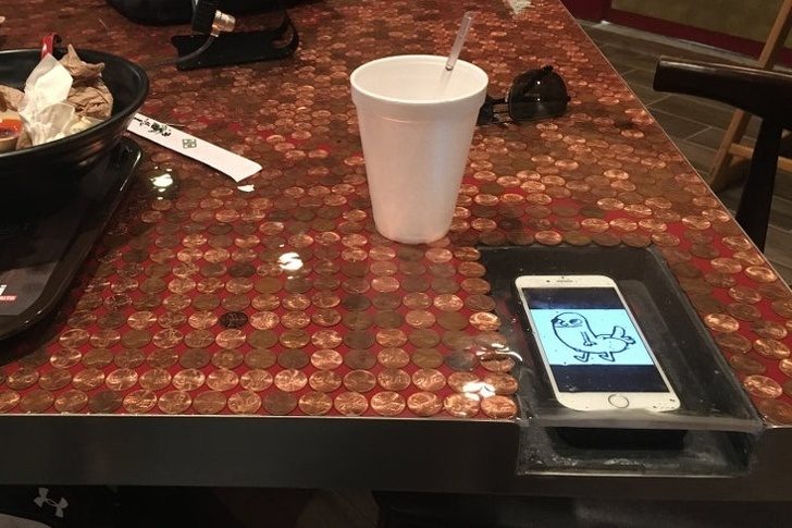 ▼手機放在透明抽屜裡,飲料倒了也不怕。