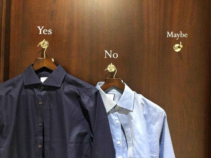 ▼試衣間裡的小貼心,可以選擇掛:要、不要、還在考慮。