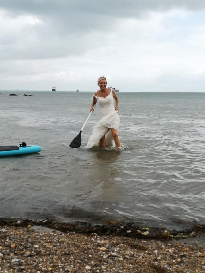 2019年08月27日昂貴、華麗的婚紗往往穿一次就被收起來,讓人感覺很可惜。英國54歲女子Dawn Winfield Hunt決定把自己那件原價1800英鎊(約台幣69,000元)的婚紗穿個夠本。她穿著婚紗逛超市、煮飯,還在社群網站上分享自己的婚紗日常,大家都覺得她的做法很有創意,也很棒~