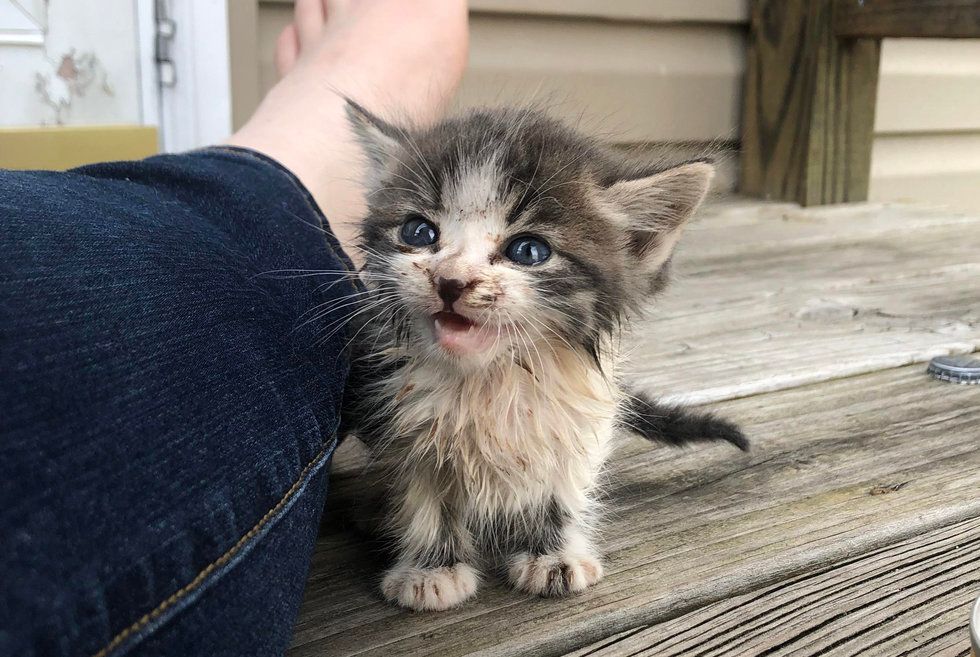 ▼那天Hannah的男友在院子裡時,一隻渾身髒兮兮的小貓突然跑了過來。牠不停喵喵叫,好像在求救。本來就很喜歡動物的Hannah連忙出來,準備將小貓帶進屋,這時她又聽到了其他的聲音。