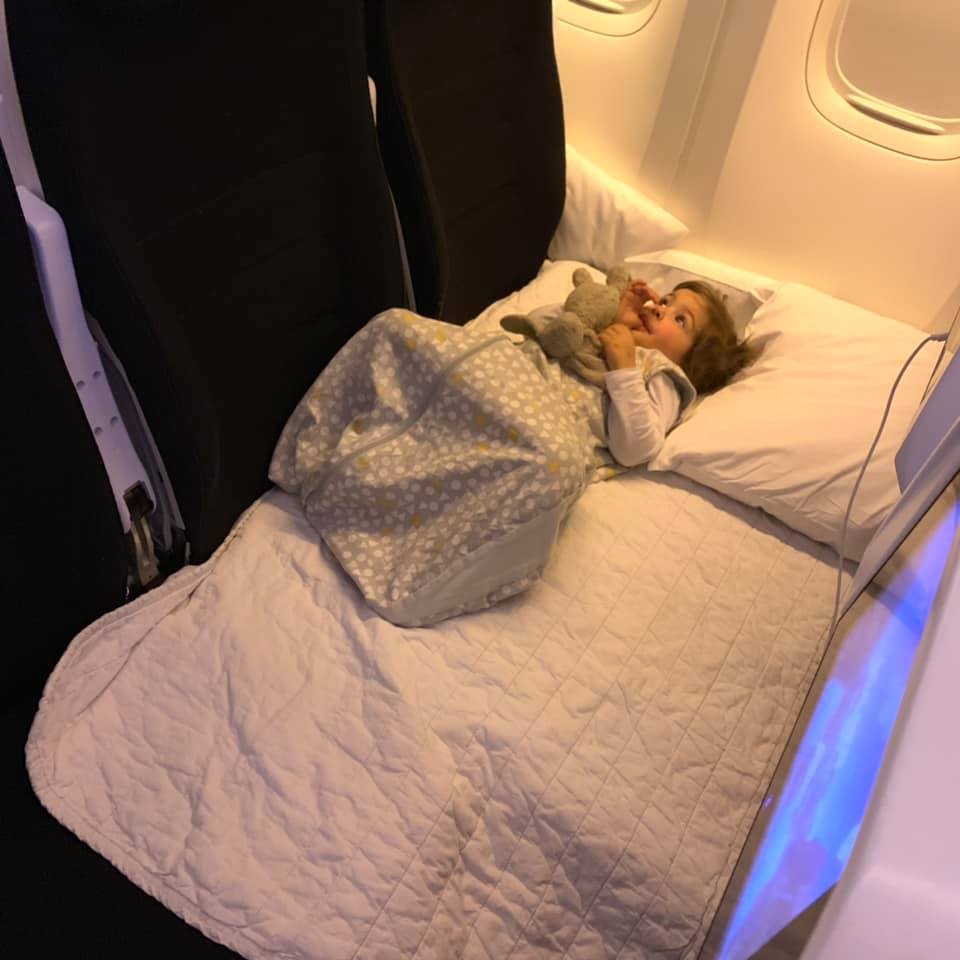 ▼原本14小時的飛行旅程,就因為有了這個「空中沙發」讓愛黛兒一家人有了放鬆、好好休息的空間,也保障了全家人在機上的睡眠品質,只花新台幣4000多元真的非常值得!