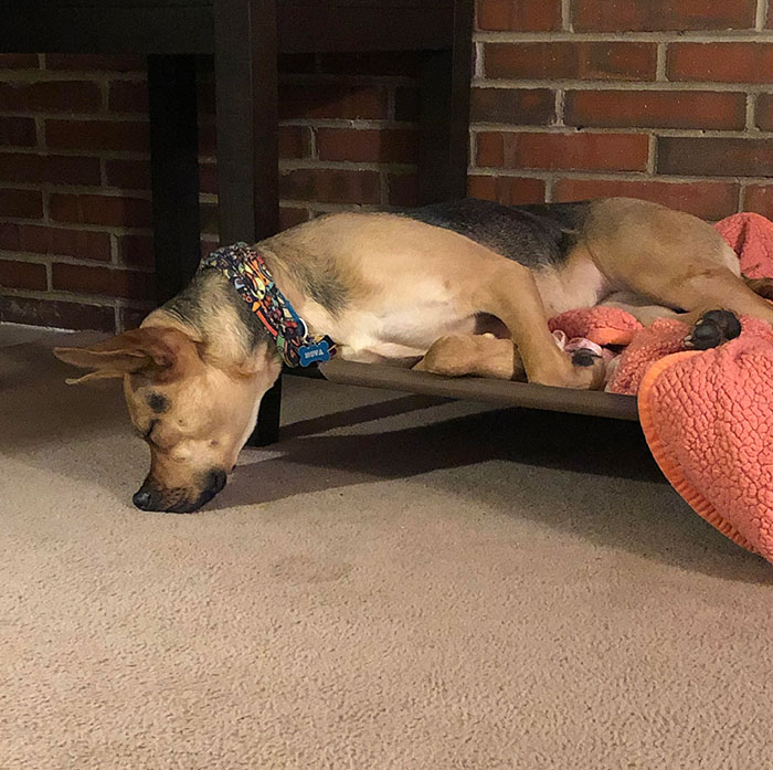 ▼狗狗懷孕了,這就是牠入睡的方式。