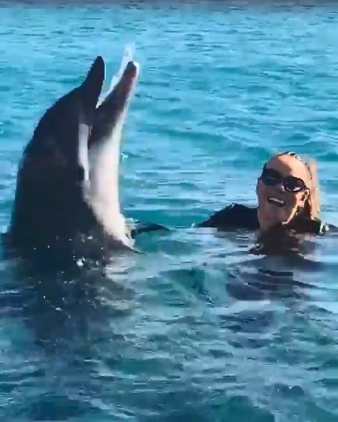 ▼日前她在分享了一段在海中暢泳,而海豚與她開心互動的影片,可以看到她們相處得非常愉快。