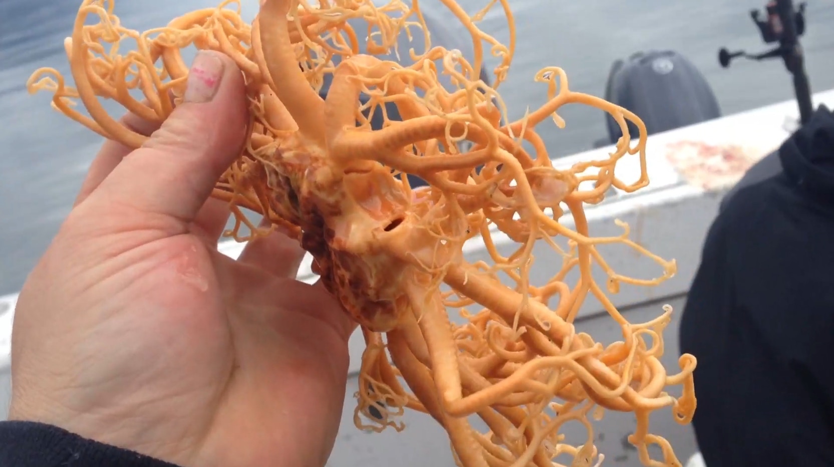 2019年09月07日大海中有很多奇妙的生物。今年8月中,美國女子Sarah Vasser-Alford和家人到阿拉斯加度假。他們乘汽艇在威爾斯親王島近岸海釣時,偶然發現了一隻奇怪的海洋生物。牠顏色鮮豔,還有很多觸手,看起來很怪異。