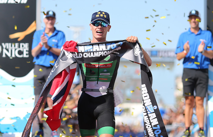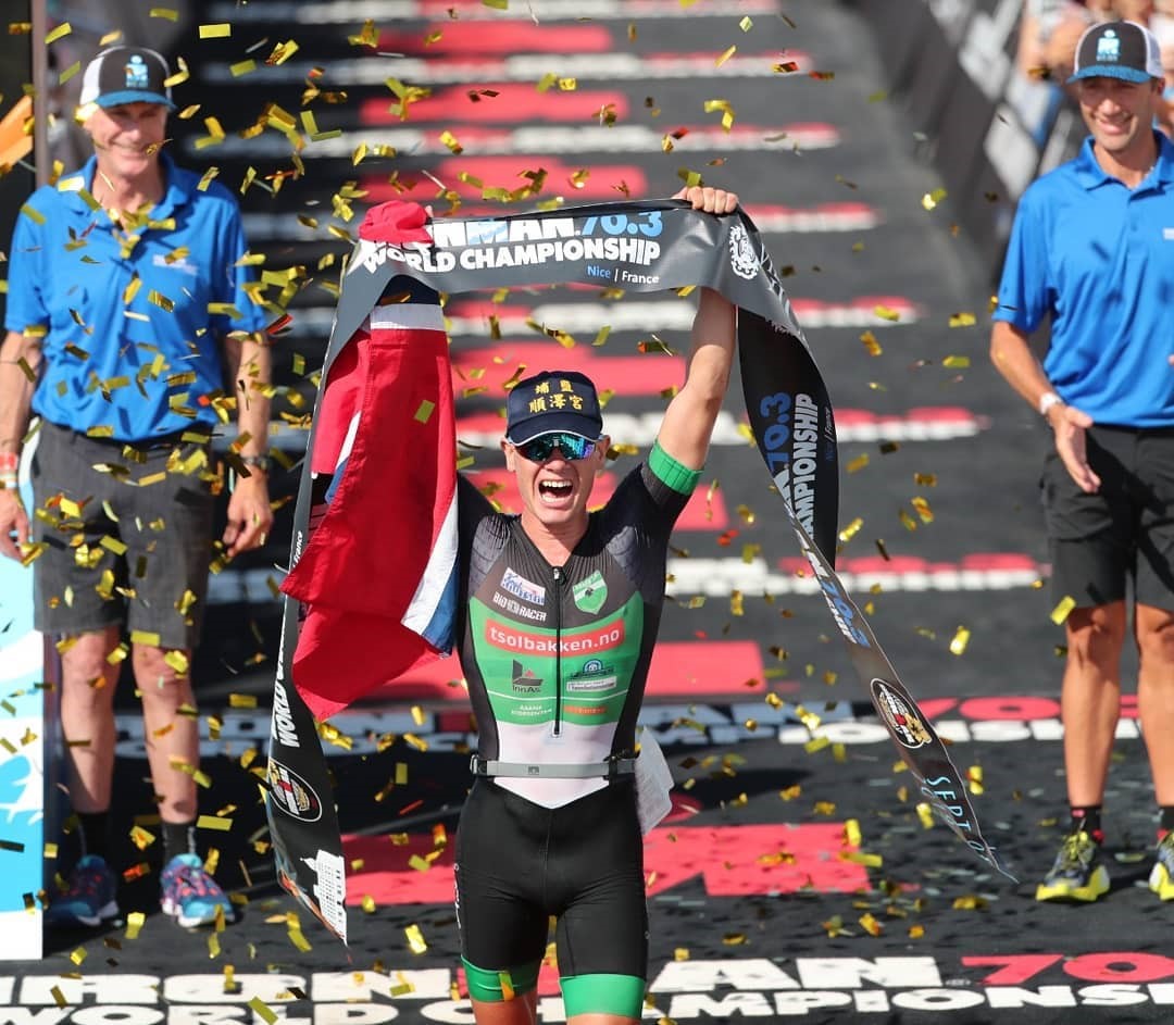 ▼在這一次的法國尼斯鐵人三項世界錦標賽當中,他也戴著這頂幸運帽子出塞,最後也順利獲得了第一名。這張照片在網路上傳開之後,許多台灣網友也紛紛湧入他的 IG 中祝賀他,並且邀請他到台灣來旅遊。
