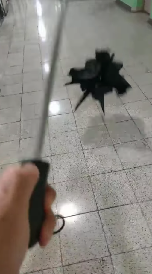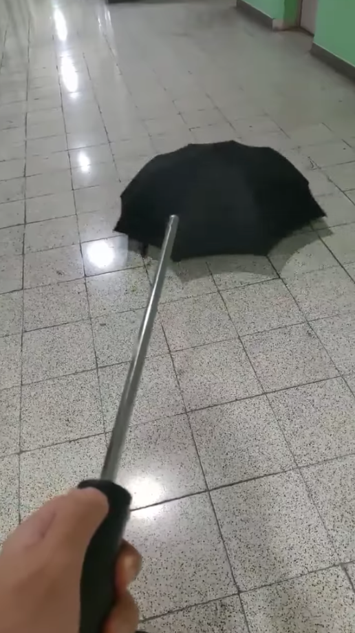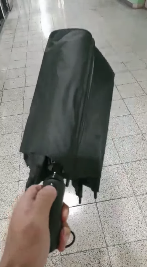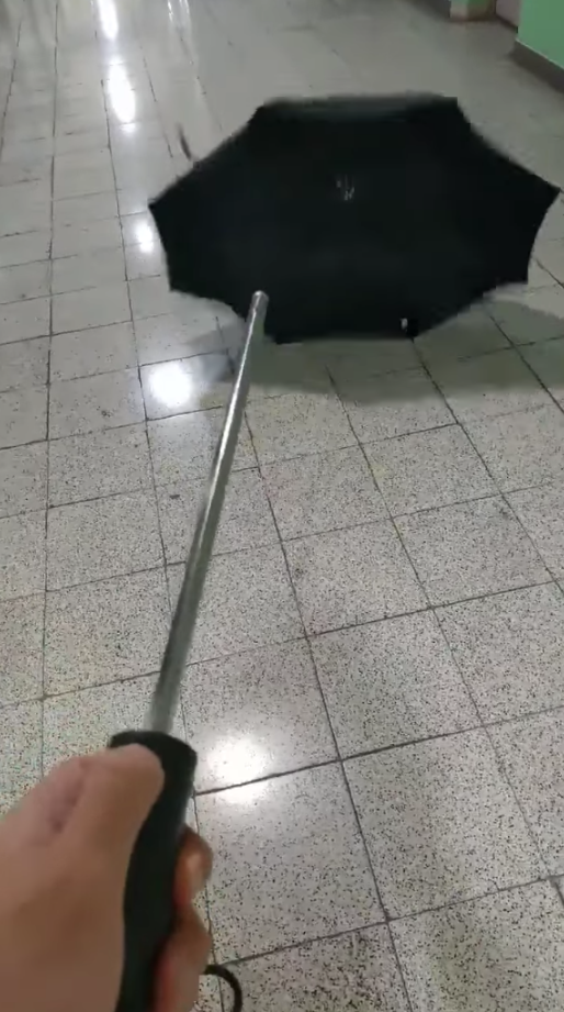 ▼黑傘竟然自己彈起來!然後!居然還自己張開欸?!