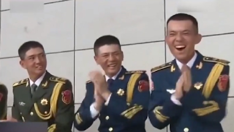 ▼一些男兵看她走台步時興致勃勃鼓掌,為她歡呼。