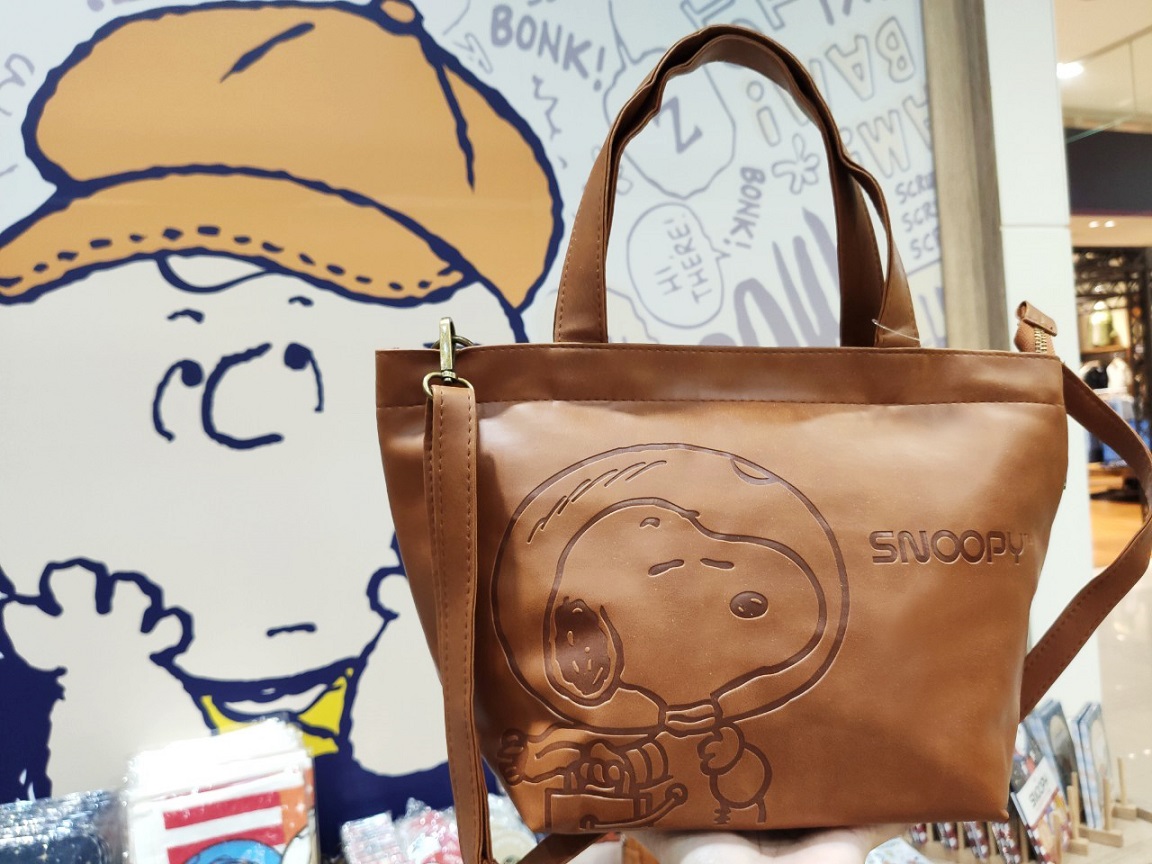 ▼皮革包:把今年史努比最新的太空人造型,以立體壓印方式呈現在皮革包上,可手提、肩背兩用,成熟俐落中帶有童趣,上班、上學都百搭。