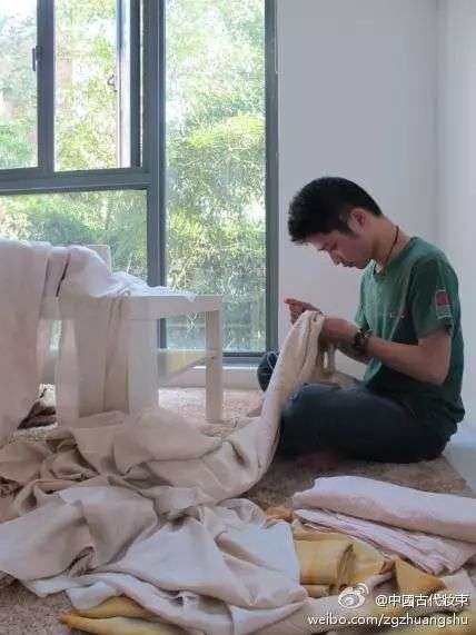 ▼第二步,是尋找原材料。現代生產力發達,面料的生產技術與過去不同。小組為了徹底還原漢服,到蠶絲的原產地搜集原材料,再對照大量文獻、出土報告,終於做出了滿意的布料結構和花紋。